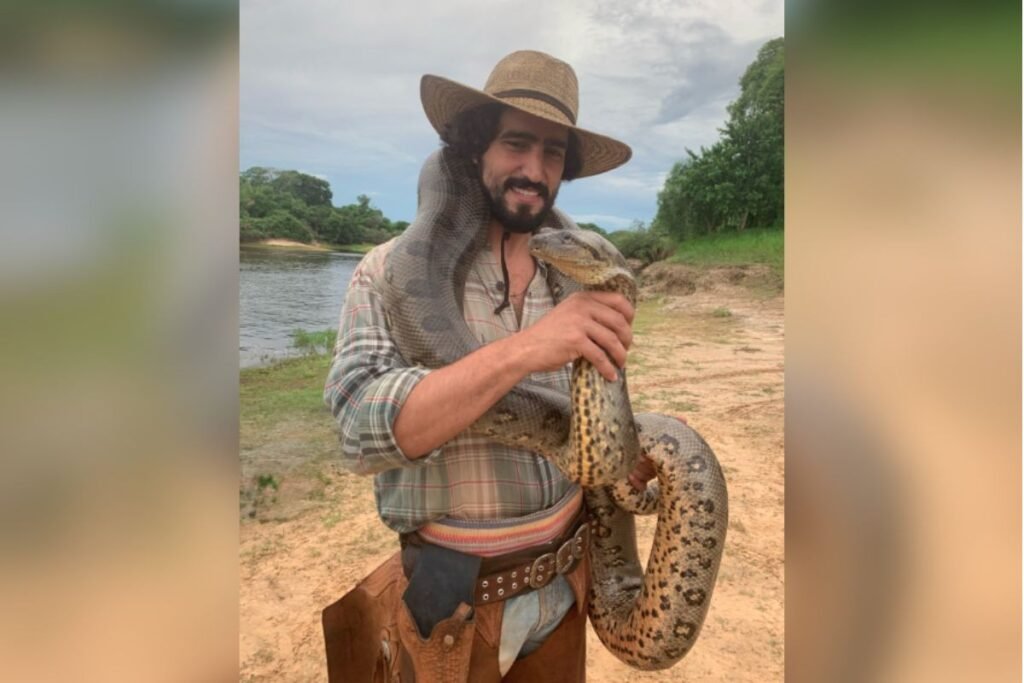 O ator Renato Góes relembrou um episódio inusitado em que ficou “enrolado” com uma sucuri durante as gravações do remake da novela Pantanal, em Aquidauana, Mato Grosso do Sul. A lembrança foi compartilhada nesta quinta-feira (29), após o ator e a esposa, Thaila Ayala, encontrarem uma cobra dentro da casa onde vivem no Rio de Janeiro.