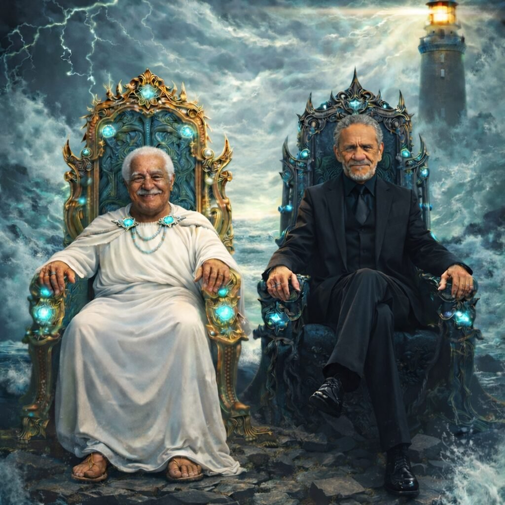 “Donos do mar” propõe que, embora Caymmi seja considerado o pioneiro nas canções sobre o mar, o território musical é compartilhado igualmente com Zé Ramalho. Na letra, eles são descritos como “duas vozes de trovão” e “dois navegantes das águas”, simbolizando a divisão igualitária do espaço sonoro ligado ao tema marítimo.