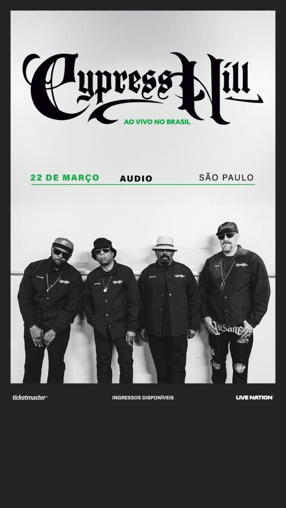Cypress Hill, show São Paulo, hip hop, Audio São Paulo, Live Nation Brasil, ingressos Cypress Hill, Black Sunday, música rap, turnê Cypress Hill, eventos São Paulo, música urbana, Ticketmaster, banda norte-americana, hip-hop clássico.