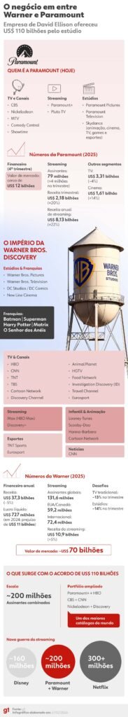 A operação prevê a criação de um dos maiores grupos mundiais de entretenimento, reunindo marcas como HBO, DC Comics, “Harry Potter” e “Game of Thrones”. O novo conglomerado deverá atingir cerca de 200 milhões de assinantes, o que pode alterar o equilíbrio do setor global de streaming.