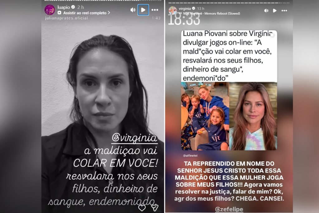 No vídeo, Luana compartilhou o depoimento de Juliana Prates, que relatou a morte do irmão causada por dependência em apostas online. Na legenda, a atriz escreveu: “Virginia, a maldição vai colar em você, resvalará nos seus filhos, dinheiro de sangue, endemoniado”. A declaração entrelaçou uma crítica ao problema das apostas com um ataque pessoal à influenciadora e aos seus filhos.